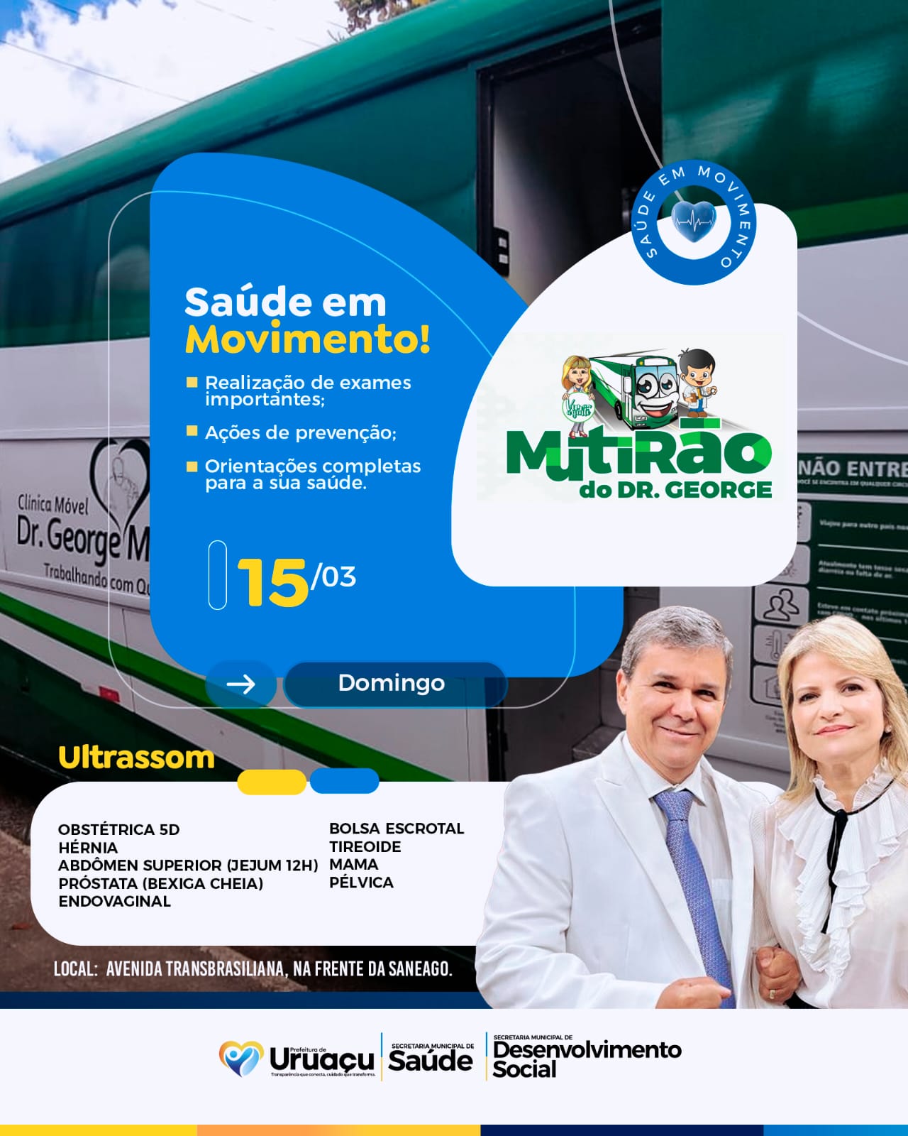 Prefeitura de Uruaçu realiza Mutirão da Saúde neste domingo com exames, atendimentos e ações sociais